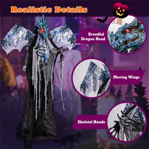 Rule Halloween Night with This 6ft Animatronic Dragon! Unleash pure spectacle with this life-sized, motion-activated Halloween Dragon — a show-stopping centerpiece that blends fantasy power with eerie Halloween horror.